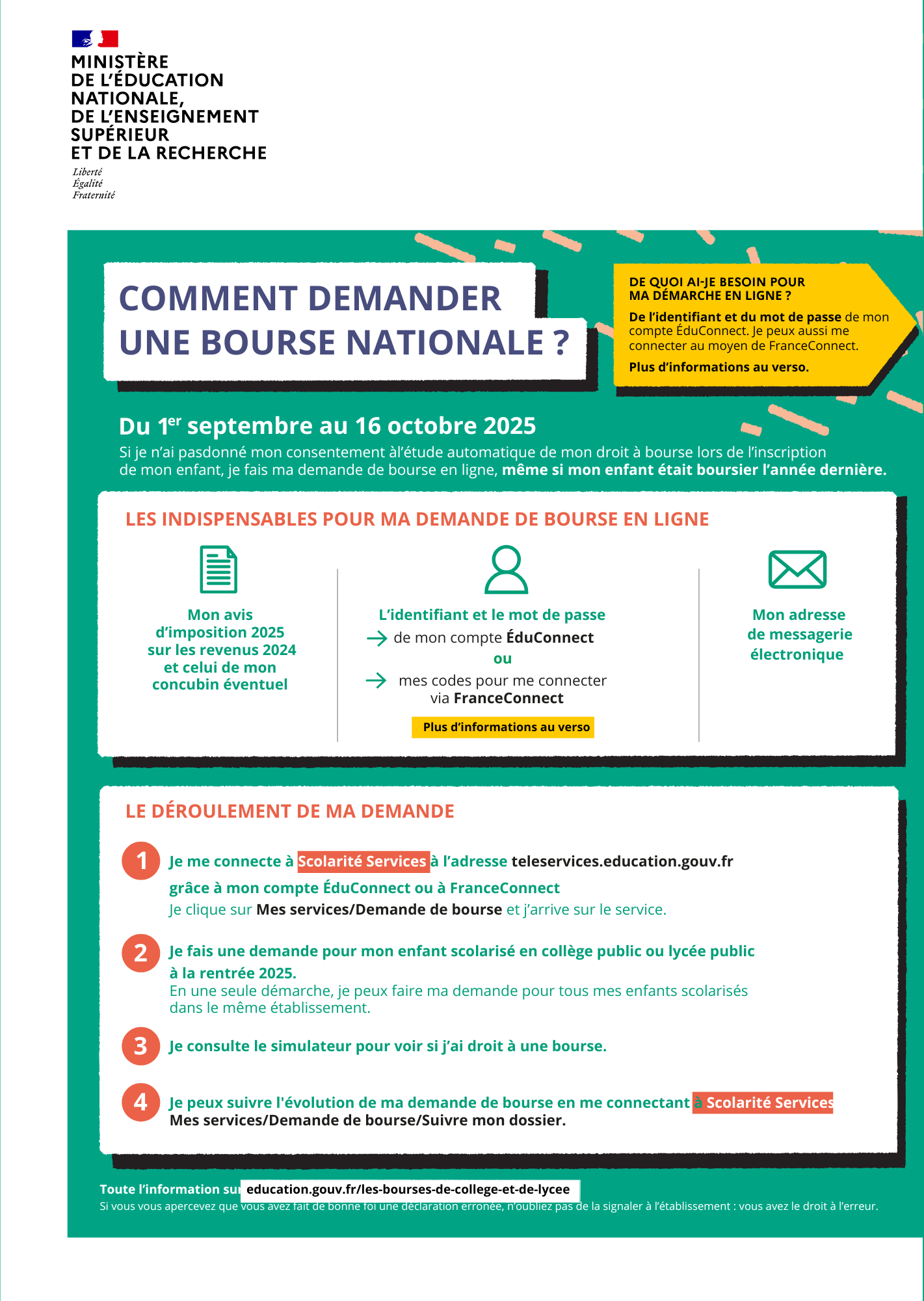 Campagne nationale "demande de Bourse Nationale" : fin le 16/10
